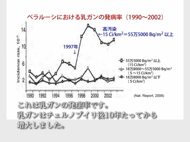 乳ガンはチェルノブイリ後10年たってから増大しました。